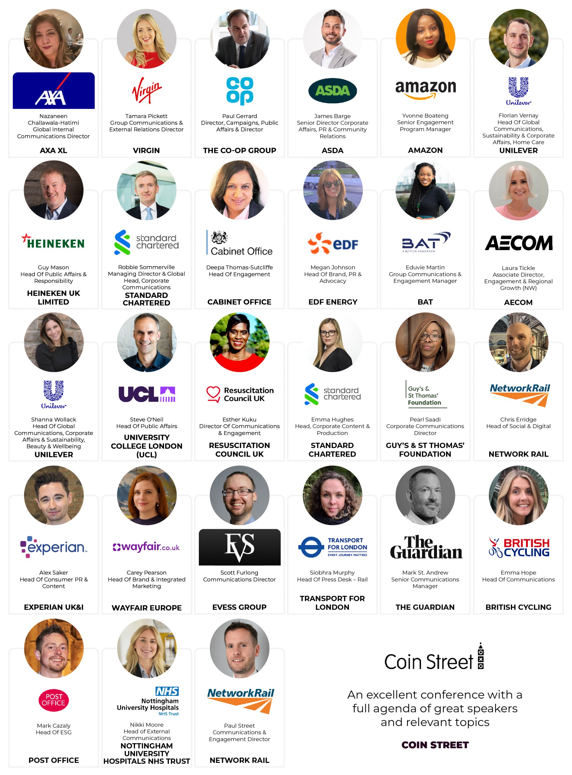 - Meet The People Shaping UK Comms: Hear case studies and candid experiences from major organisations such as Asda, Unilever, Heineken, Amazon, Virgin, The Cabinet Office and more!