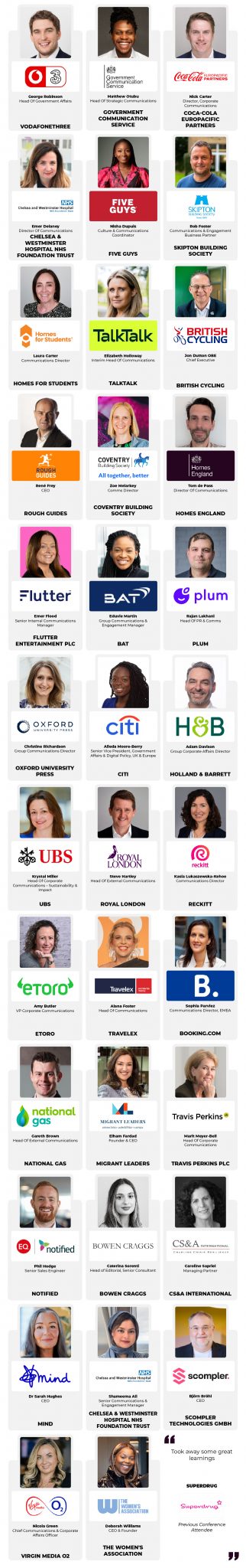 The Must-Attend 10th Annual Corporate Communications Conference Brings Together 35+ Senior Corporate Thought Leaders In Communications, Public Affairs, & Media To Share Their Latest, Urgent Real-World Strategies & Fresh Case Studies.